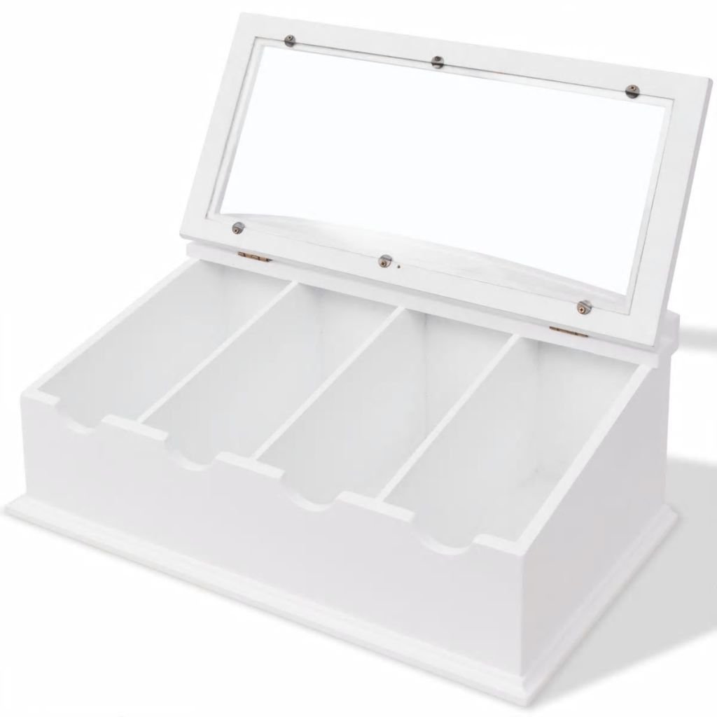 The cutlery tray has 4 large and deep storage compartments; which provide sufficient storage space. It is equipped with a glass lid that keeps the items inside dust free; and you will have an overview of your cutlery set and can quickly get the things you need. Made of high-quality MDF; the cutlery holder is very durable.