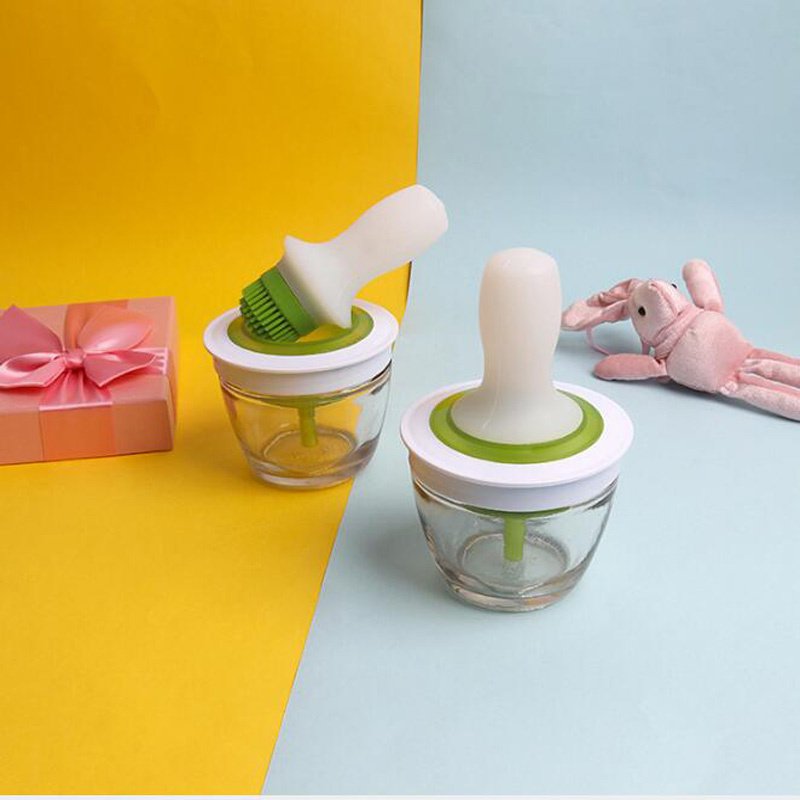 4.SAFE MATERIAL: Made with high quality food grade silicone. Heat resistant and BPA-free. Silicone kitchen basting brush Set with squeeze handle and sturdy glass Jar. Free for microwave or dishwasher.