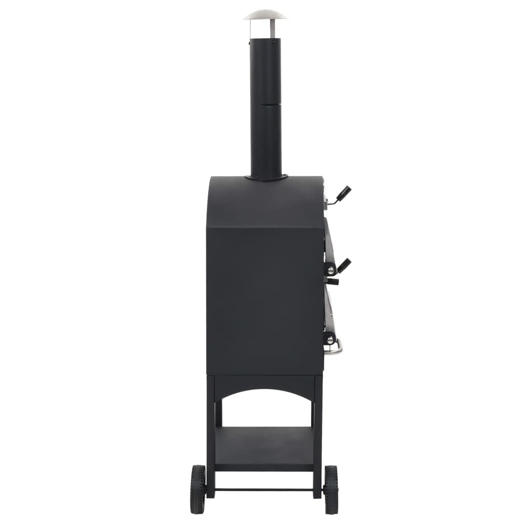 Made of high-quality powder-coated steel, this oven is highly robust and durable. The fire tray is removable, allowing for quick and easy cleaning. The practical shelf underneath provides space for storing oven gloves or other supplies. This oven also comes with a built-in thermometer which displays the cooking temperature inside. Thanks to the two wheels, the smoker is easy to move around. A pizza stone is also included in delivery.
