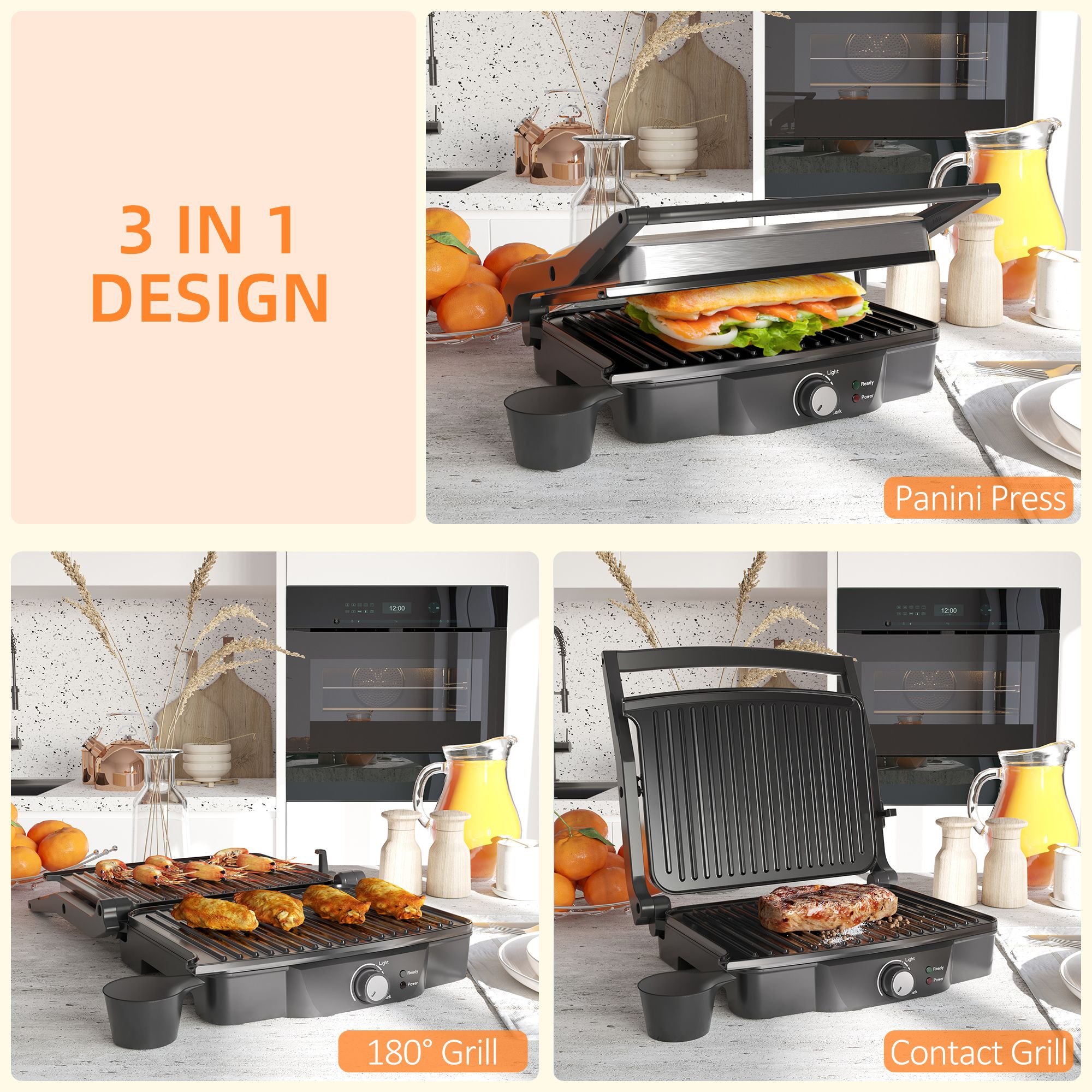 ALL YOUR FAVORITE FOODS: This sandwich press is powered by 1400 W and can cook sandwiches, paninis, steaks, chicken, and vegetables that will cook on both sides.