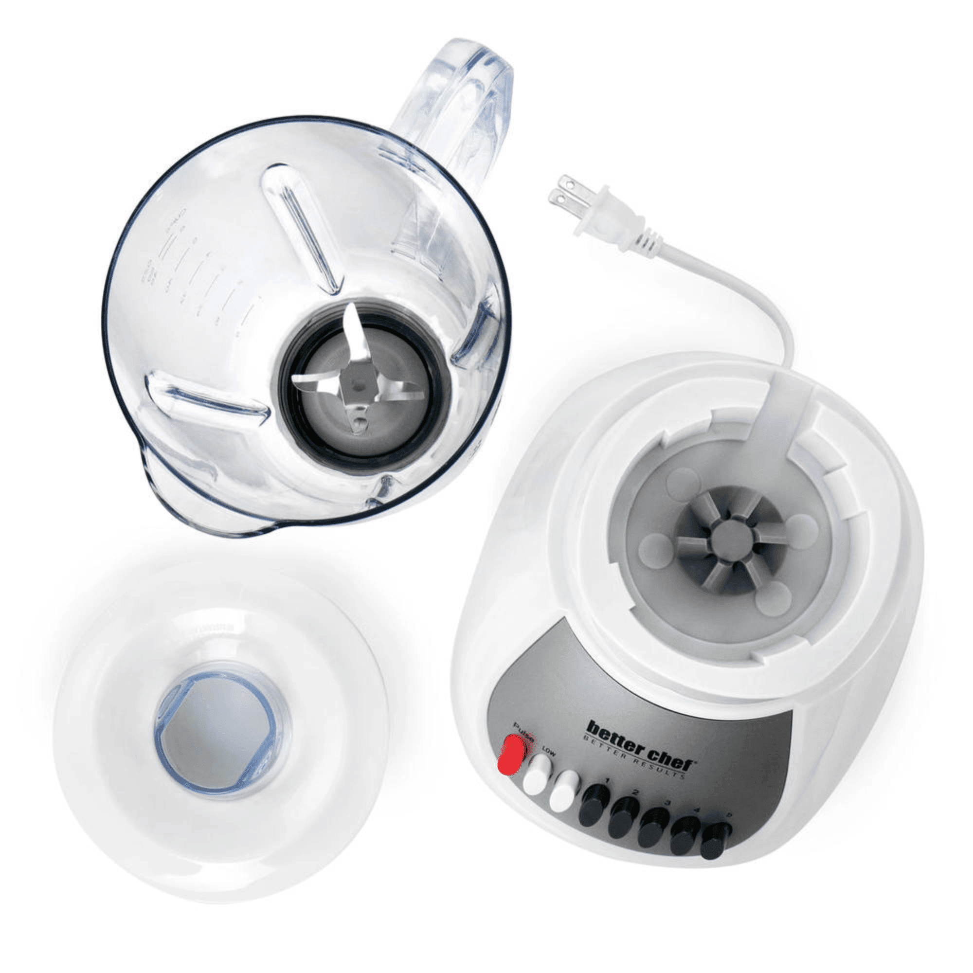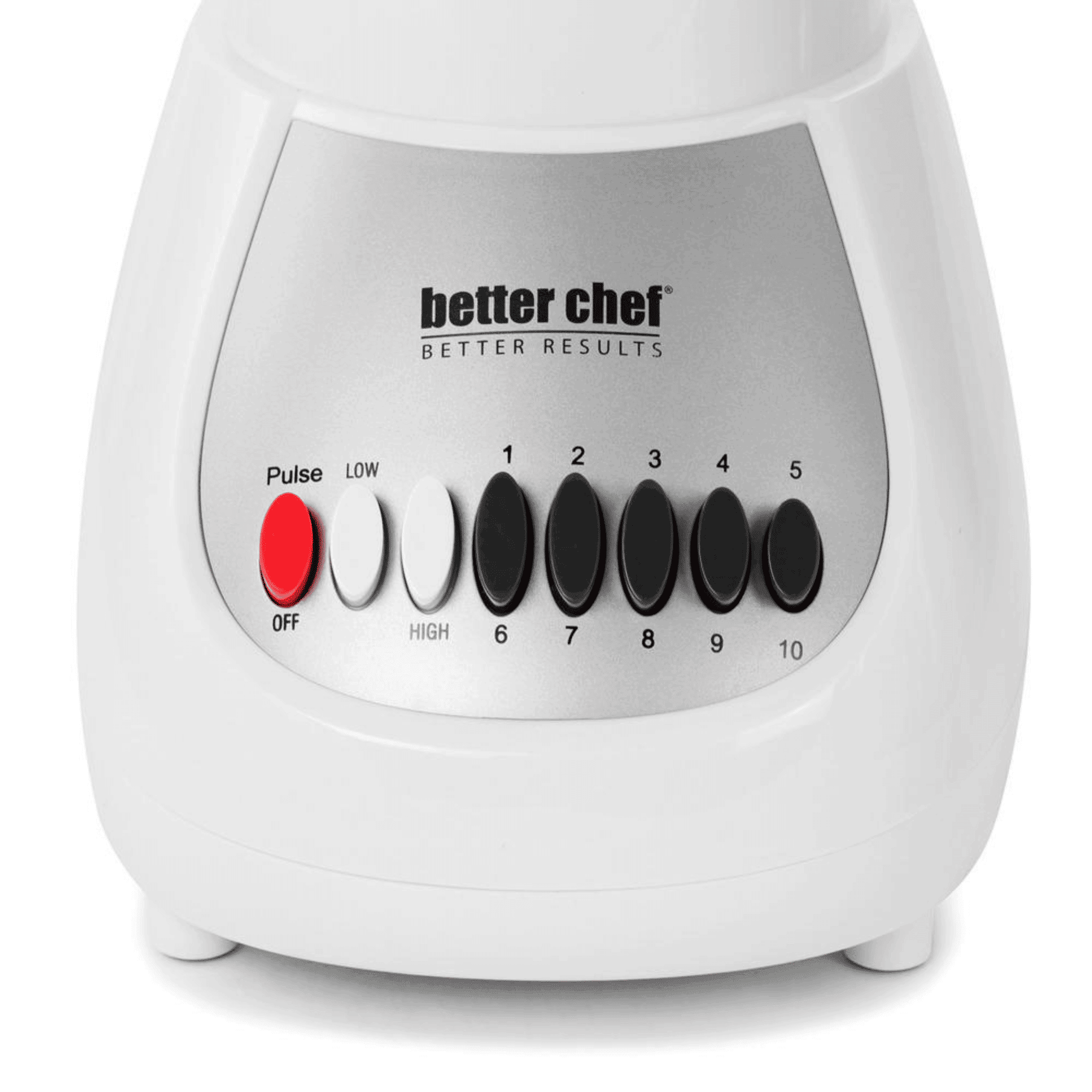 The Better Chef Classic 10-Speed 6-Cup 350 Watt Plastic Jar Blender is versatile and durable for long-lasting use. This blender has 10 continuous speed capabilities with a pulse function for mixing, whipping, and chopping. This 50oz BPA-free AS Polymer Jar is shatterproof and dishwasher safe. This blender comes with a plastic jar, electric base, filler cap, and stainless steel blade. Easy to clean electric base wipes clean and resists staining.