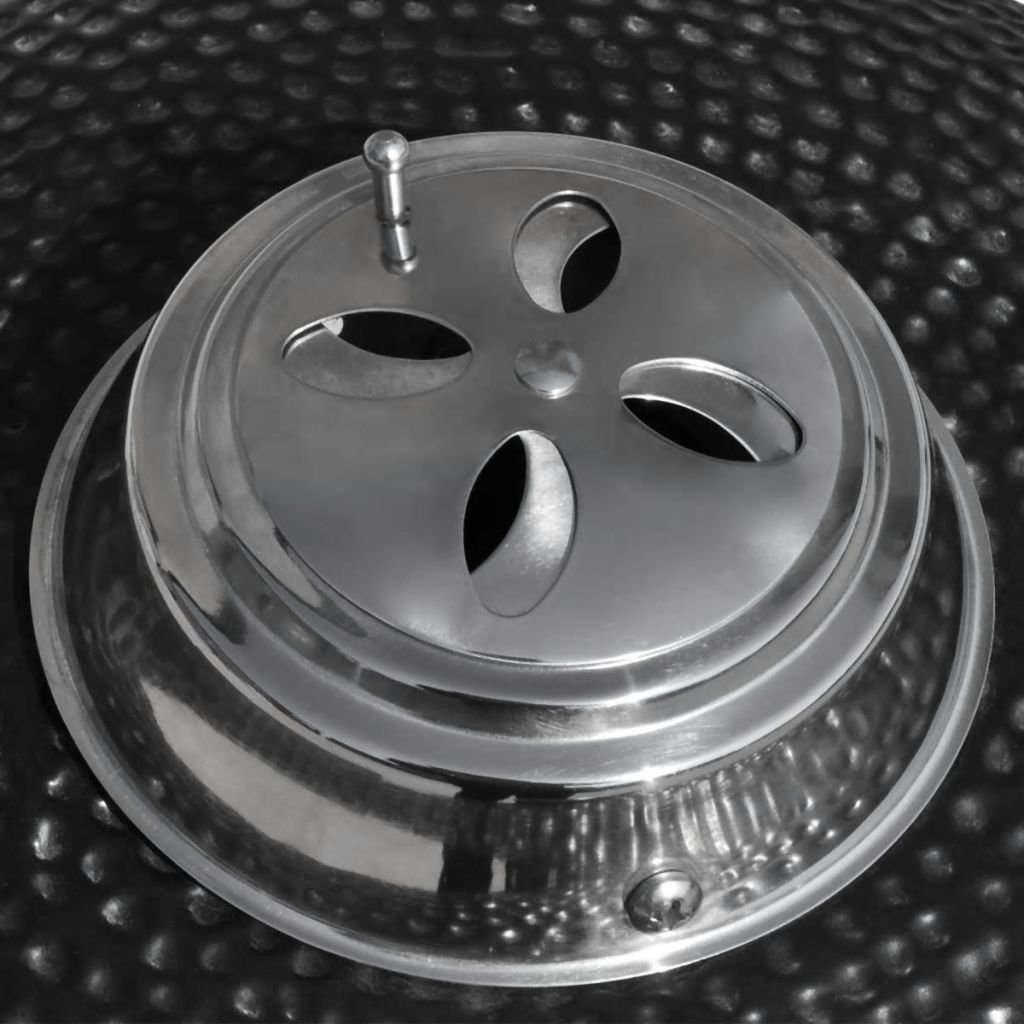 This ceramic barbecue has a very sturdy hinged lid with a vent and a thermometer on top. Thanks to the double-layer vent; you can control the air flow as well as the temperature with ease.