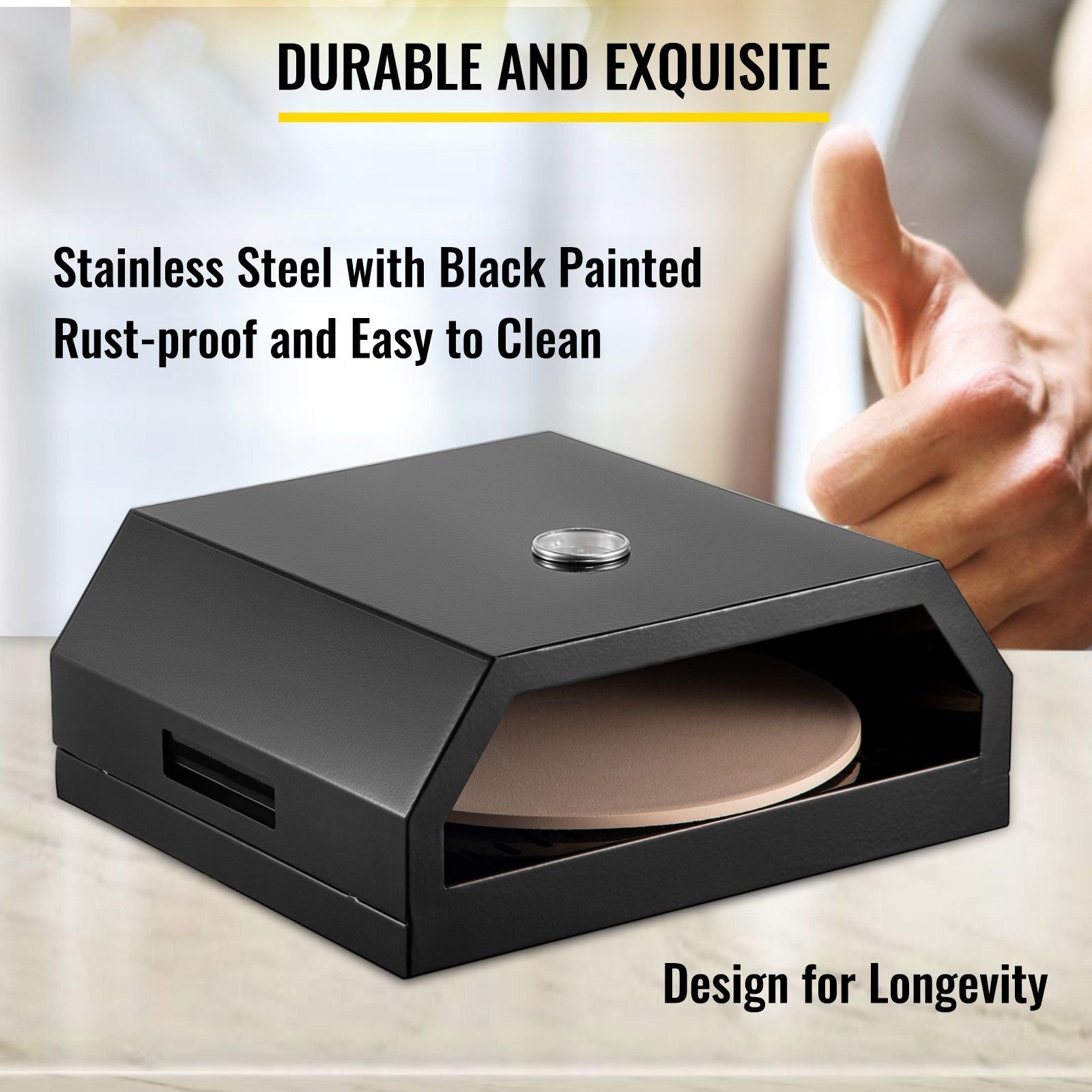 A thermometer is set on the surface of the oven to monitor the internal air temperature. The maximum temperature can reach 450°F. Unlike traditional electric pizza ovens, this Italian artisan pizza oven can help you bake fresh or frozen pizzas quickly and easily.