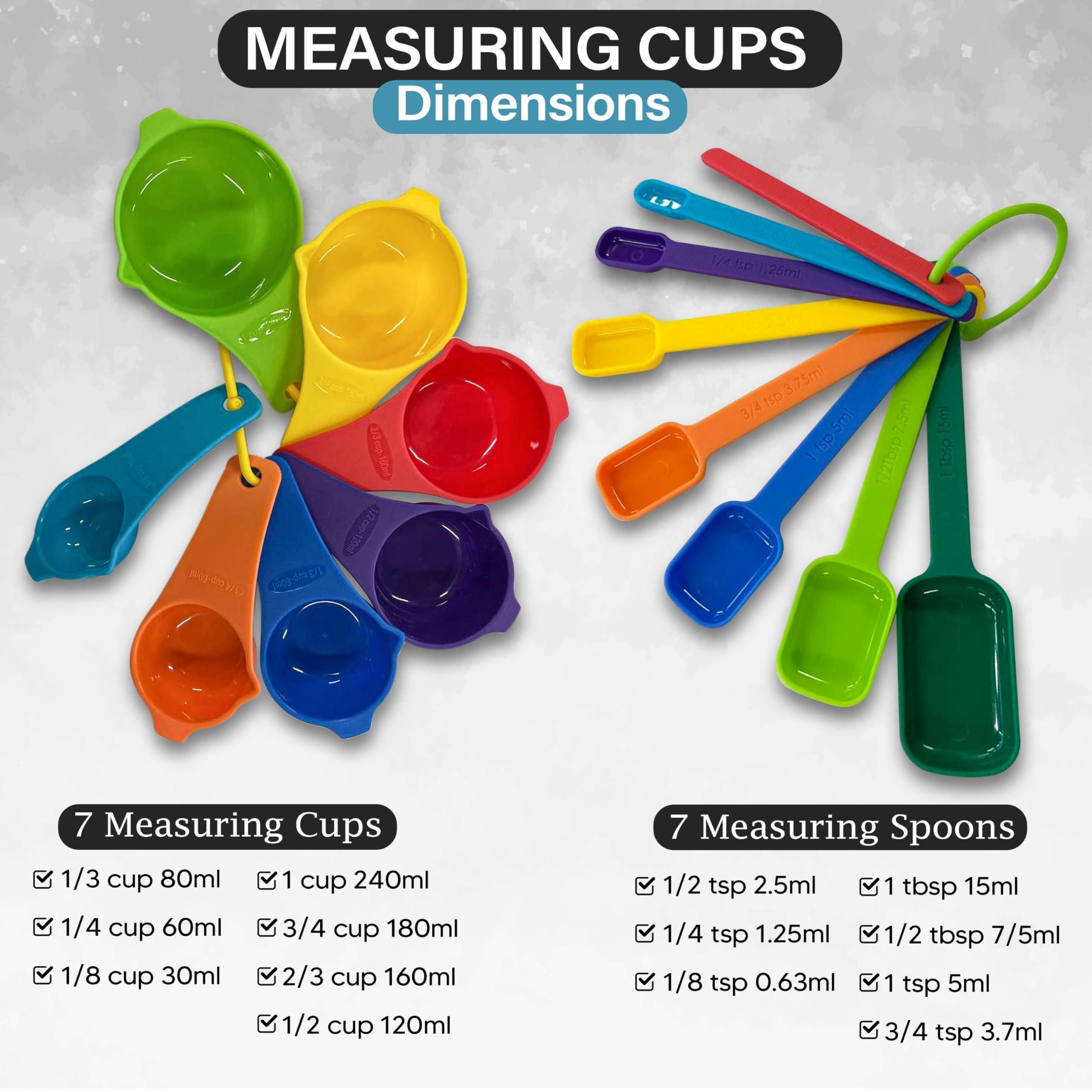 3.Durable BPA Free Plastic Measuring Cups: Crafted from durable, food-grade plastic, our family-friendly measuring spoons and cups are ideal for every kitchen. The lightweight and portable design makes them perfect for individuals of all ages.